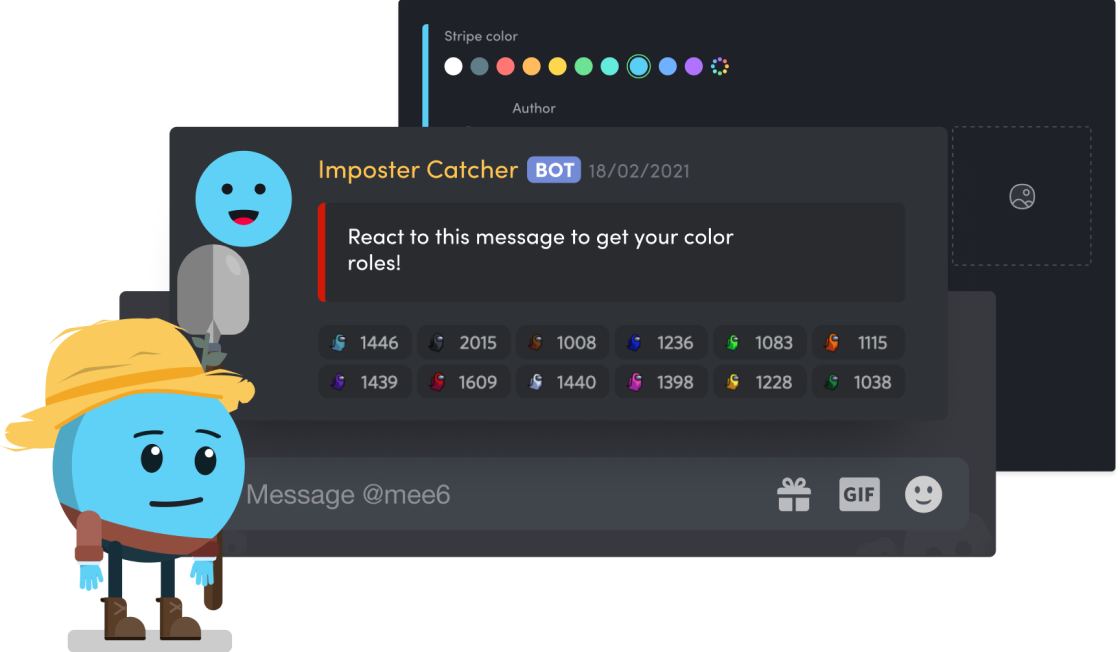 The best Discord bot is the one you can customize yourself. Let’s make the Discord client better than ever. Customize MEE6 to reflect your server's personality. Unlock its potential with a powerful plugin system. Utilize MEE6's Bot Personalizer feature to make your server unique so the bot integrates into your server's universe and aligns with your branding. You can create a unique space for your community. Take control of MEE6 and tailor it to match your server's identity and enhance the user experience. It’s easy! With the help of our simple tutorial and helpful support team, you’ll be seeing all of the cool possibilities that MEE6 can bring to your Discord server in no time. Are you ready to see what MEE6 bot can do?