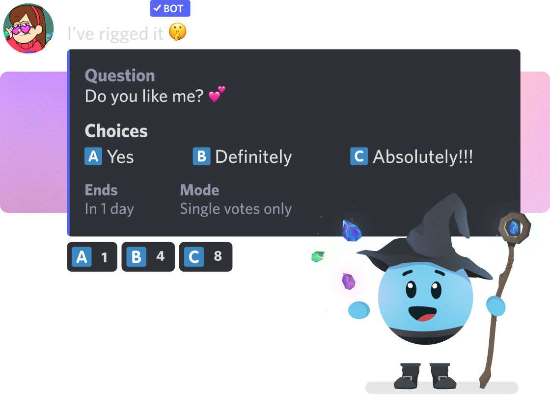The MEE6 poll plugin is a powerful tool that allows you to create polls in the Discord application. With this plugin, you can truly engage your community! You can choose the duration of the poll, set multiple-choice or single-choice options, and even add additional helpful features! Once the poll is live, users in your Discord server will participate by casting their votes. The bot plugin collects and tallies the votes, providing you with real-time results. This feature is awesome for gathering feedback, or simply fostering interaction among your server members. Whether you're planning an event, deciding on a game, choosing a guild leader, or seeking opinions, a poll plugin simplifies the process.